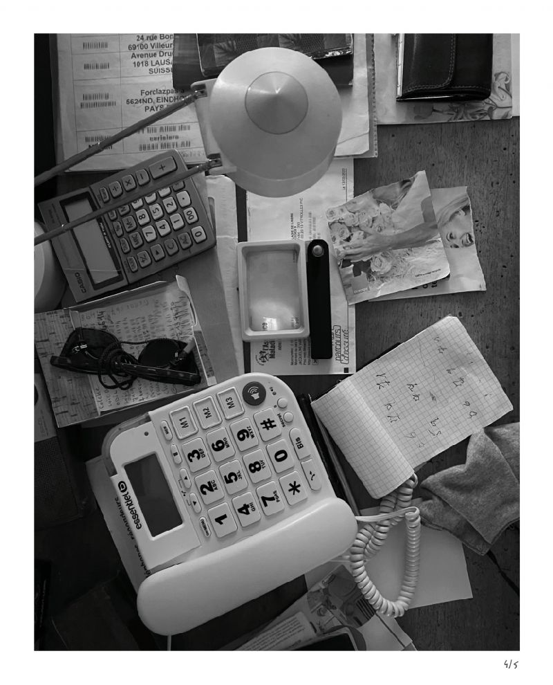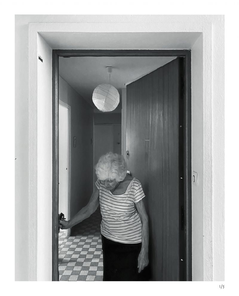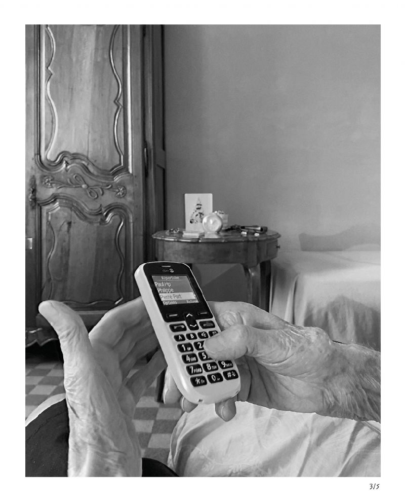 Пять черно-белых фотографий создают повествование, которое прекрасно визуализирует текущее состояние жизни, где преобладают отсутствие близости и последствия социального дистанцирования — особенно для пожилых людей. Обладая вниманием к деталям и пространствам, фотограф создает одновременно острый и поэтичный, реалистичный и уважительный портрет пожилой женщины, которая кажется изолированной в своем доме. Камера соединяет ее воплощенное присутствие и следы ее личной жизни с электронными устройствами, которые служат различными линиями жизни.