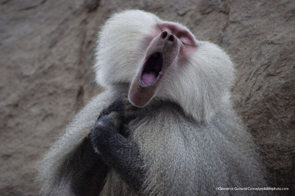 Самой забавной фотографией дикой природы в 2021 году стал снимок под названием «Ой!» (Ouch!), на котором изображен сидящий на проводе самец обезьяны. Кадр был сделан Кеном Дженсеном (Ken Jensen) в Китае во время семейного отдыха в 2016 году.