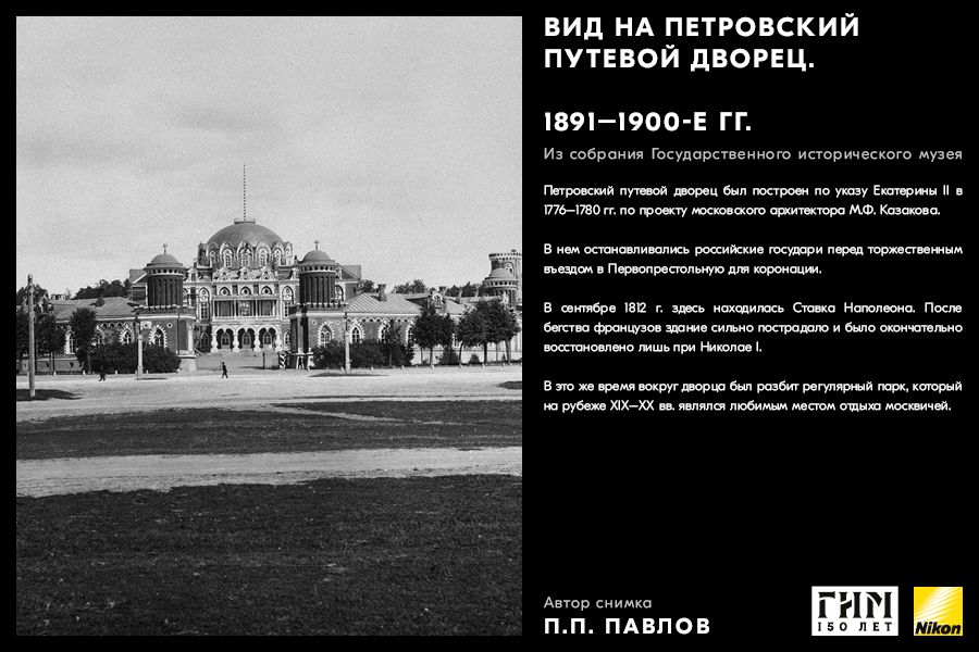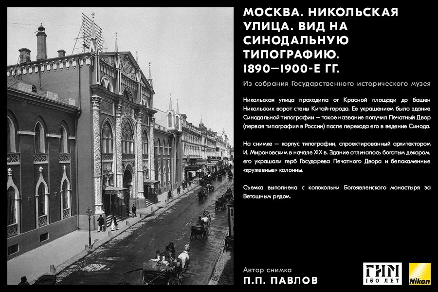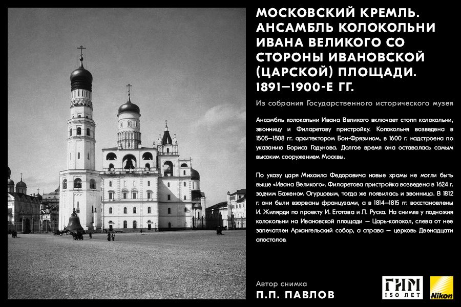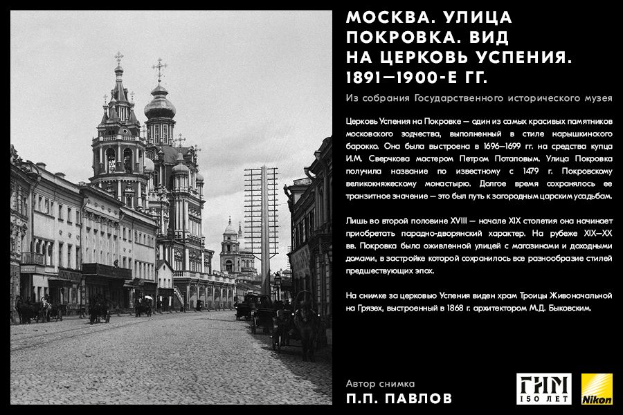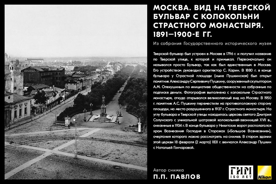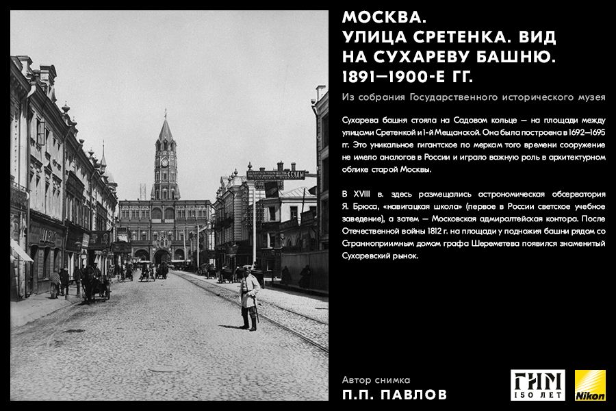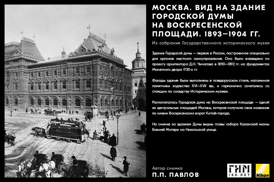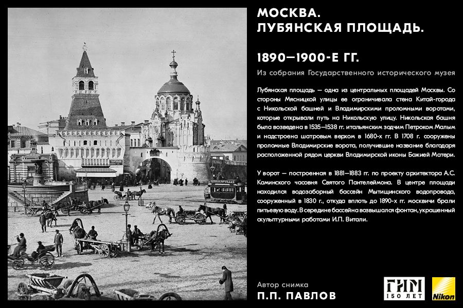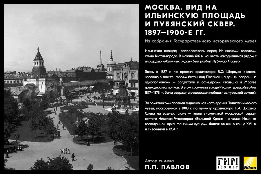 Сделайте фото исторических мест вашего города, вдохновившись советами амбассадора Nikon Максима Мармура, а также выставкой работ профессионального фотографа и владельца фотоателье П.П. Павлова из коллекции Государственного исторического музея. В 1898 г. Петр Павлов начал крупномасштабную съемку достопримечательности Москвы, он сумел создать собственный фотографический образ города конца ХIХ – начала ХХ в. и передать неповторимое обаяние старой Москвы.