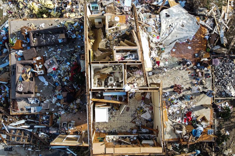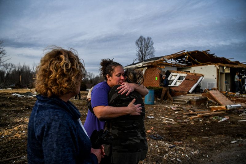Обрушившийся на Кентукки торнадо лишил тысячи семей рождественских праздников. Жертвами урагана в штате стали как минимум 88 человек. Погибшие были также в штатах Теннесси, Арканзас, Миссури и Иллинойс. Зияющие дыры во многих домах, офисах и церквях в городе Мейфилд с населением 10 тыс. человек уже накрыты синим брезентом, другие же здания стоят с обрушившимися крышами и выбитыми окнами. Рабочие вывезли тонны обломков из городов на западе Кентукки, фактически стертых с лица земли смертоносным ураганом. Тем временем, растерянные местные жители пытаются понять, как заново отстроить свои жизни. Некоторые из них решили остаться в своих разрушенных домах вместо того, чтобы переехать к родне или в центры размещения пострадавших. Обрушившийся на шесть штатов торнадо принес разрушения и в маленькие удаленные городки, к которым не сразу добралась помощь. На восстановление городов Мейфилд и Доусон-Спрингс, где целые кварталы превратились в горы мусора, уйдет не один год.