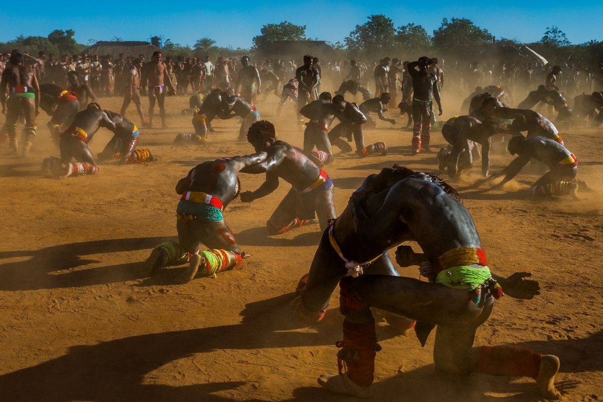 Куаруп — это ритуал коренных бразильцев шингу в честь прославленных умерших, это прощание и закрытие периода траура. Праздник проходит раз в год в разных селах и длится три дня. Изюминкой этого праздника является соревнование по боевому искусству под названием Хука-хука, похожее на борьбу греко-римской борьбы, имеющее соревновательную символику, показывающую силу и мужество юношей. Эти фотографии были сделаны во время празднования Куарупа в деревне Афукури этнической группы Куйкуро. Ритуал этого года почтил память людей, погибших в период с 2020 по 2021 год: четверо из пяти стали жертвами Covid-19.